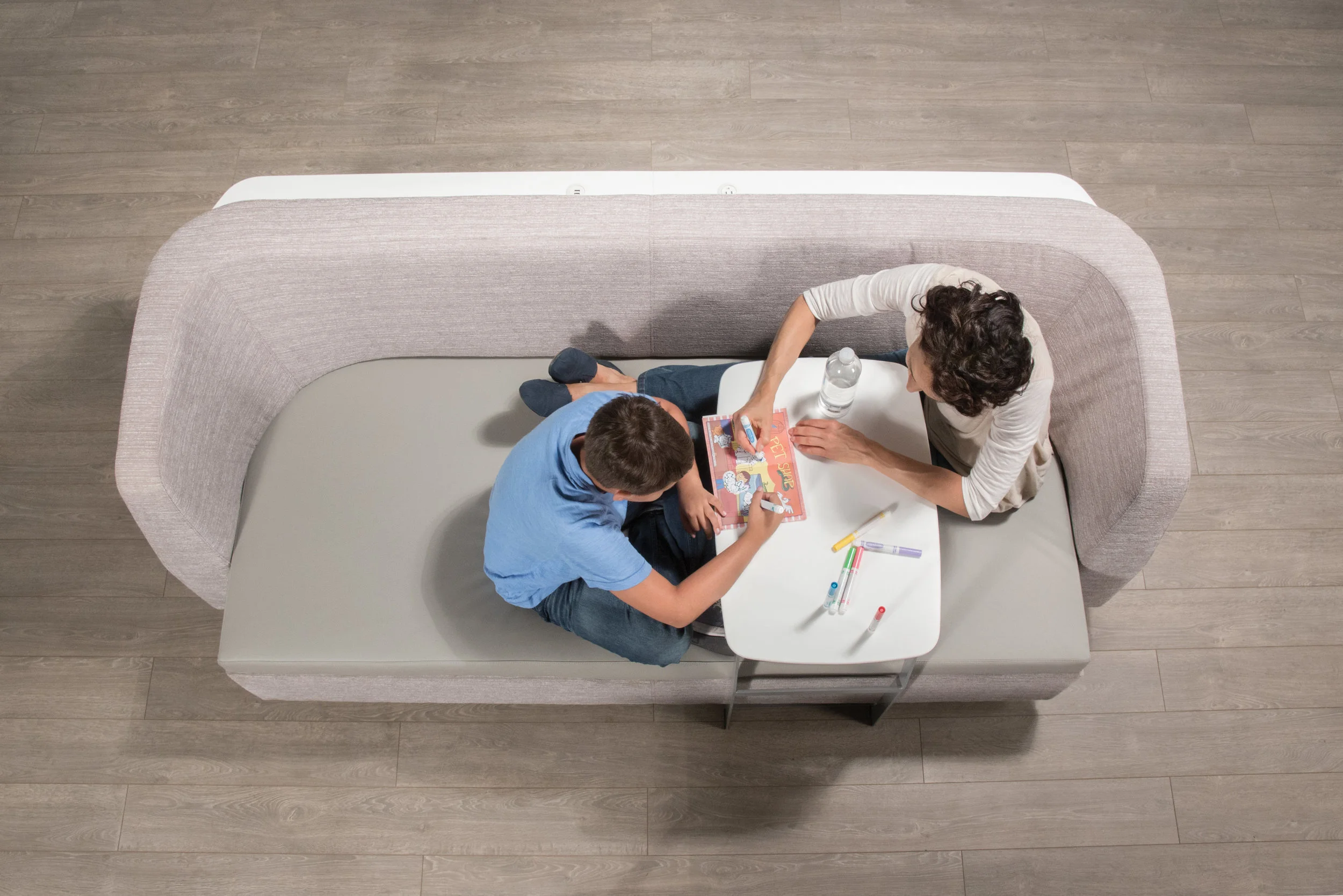 The CAMA Family Chaise Sleeper cradles family members in a comfortable nook that converts from a chaise by day to a sleeper by night. Like the CAMA Bed Chair, the Chaise Sleeper enables critical engagement between patient and loved ones.